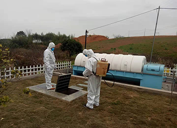 2021年12月22日科然環(huán)境運維組員工為號召國家防控疫情政策,對各個終端和管網的污水池進行全面的清掏、消殺工作。運維組消殺人員配有專業的防護服、手套、口罩以及專業的消殺工具。